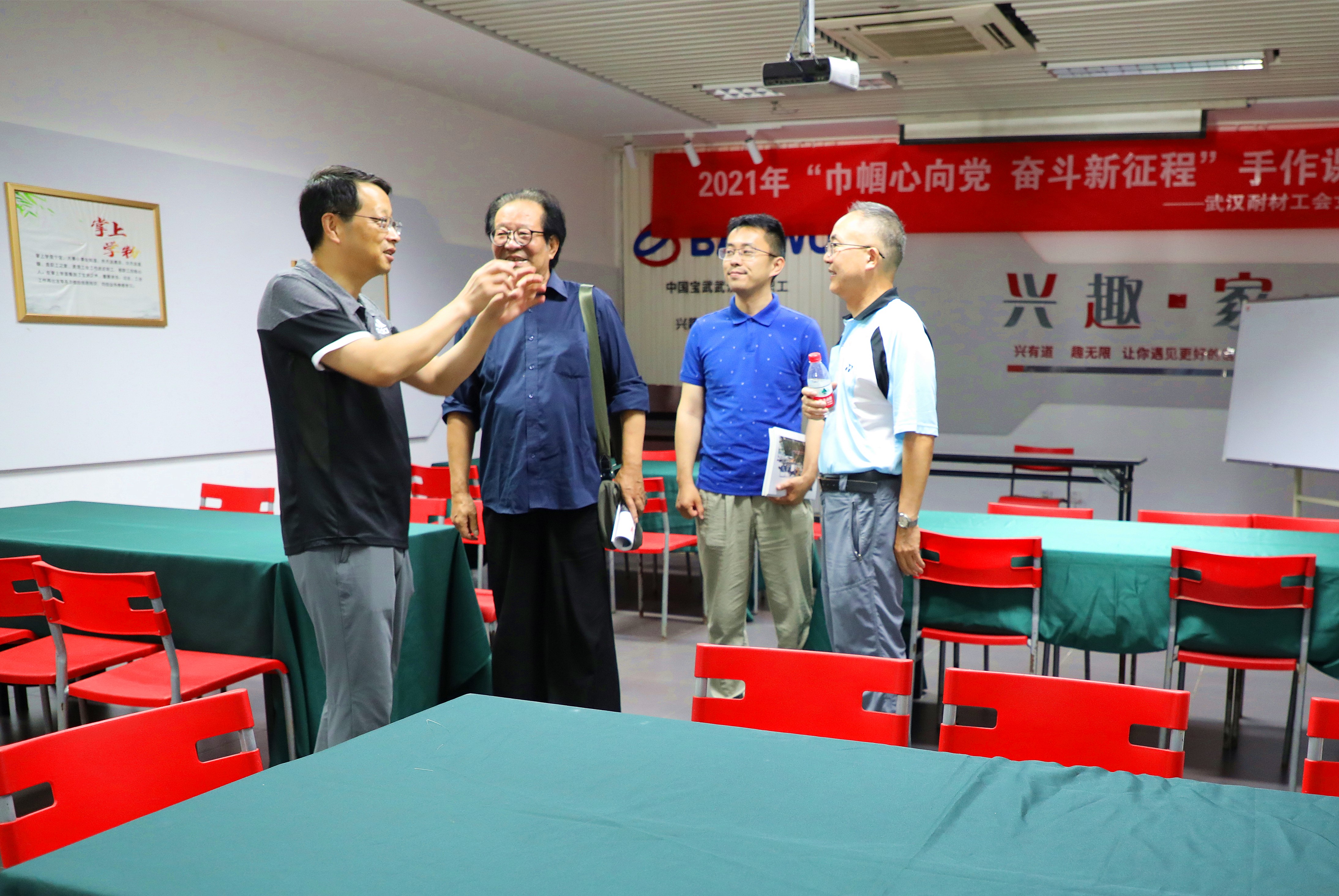6月23日下午,冶金文學藝術協會(以下簡稱冶金文協)副會長、美術專業委員會名譽主席陳貴民,冶金文協副會長張燕明,冶金文協秘書長郭達清及辦公室主任任群等一行,前往中國寶武武漢總部(武鋼集團)工會職工興趣協會基地,就協會如何配合企業團結帶領廣大文藝工作者和愛好者立足企業、面向職工、深入基層、貼近生活,用飽滿的筆墨謳歌職工群眾,以多彩的作品展現時代風采開展調研。中國寶武武漢總部(武鋼集團)工會主席李小杰,武鋼集團文學協會會長鐘鋼、美術協會會長夏偉等參加調研。